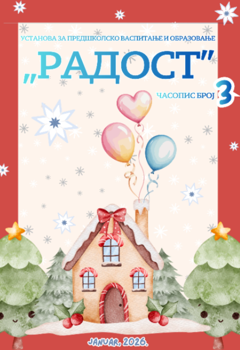 Драга децо, драги родитељи, овде можете погледати прва три броја нашег часописа. "Радост" број 1: https://online.pubhtml5.com/pzppd/dnxb/ "Радост" број 2: https://online.pubhtml5.com/pzppd/dech/ "Радост" број 3: https://online.fliphtml5.com/jvuhi/gxsp/